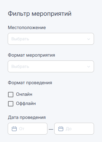 - Фильтр мероприятий — можно отфильтровать события по:
