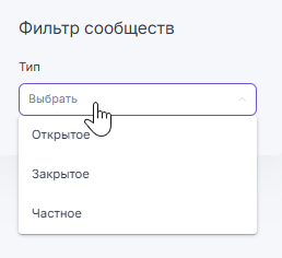 ✅«Фильтр сообществ», позволяет отобрать сообщества по типу доступа: