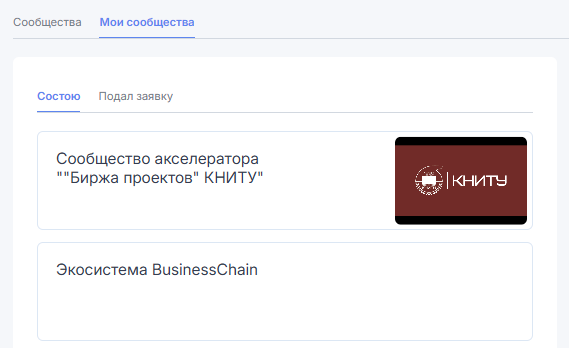 Вкладка показывает только те сообщества, к которым пользователь имеет отношение.